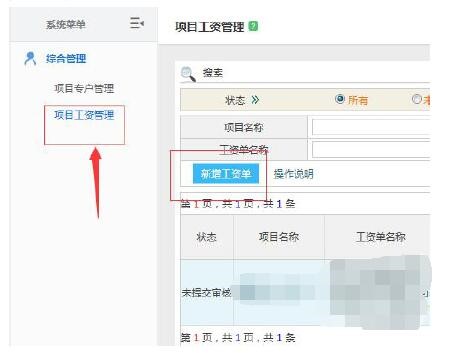 企业版“项目工资管理”中,列表中的项目状态为“工资已发放”。